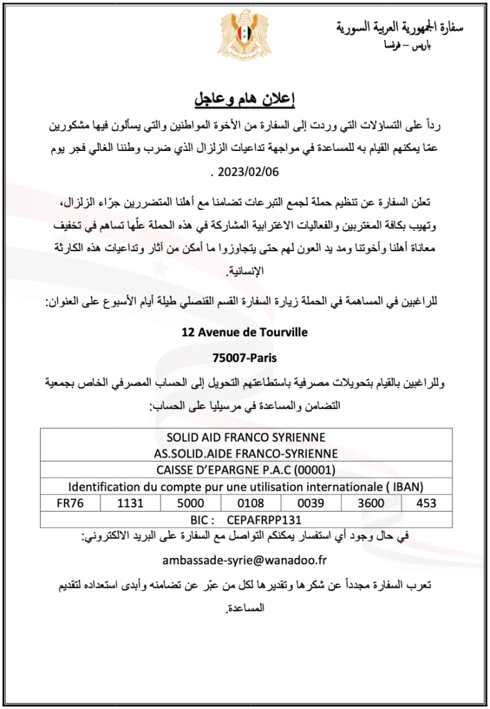 إن وزارة الخارجية والمغتربين في الجمهورية العربية السورية وبعثاتها الدبلوماسية في الخارج ستبقى على عهدها بخدمة كافة الأخوة المواطنين، وتسيير أمورهم، انطلاقا من الأمانة التي تحملها في تمثيل الشعب السوري، وبأن الوطن يبقى هو الأسمى.